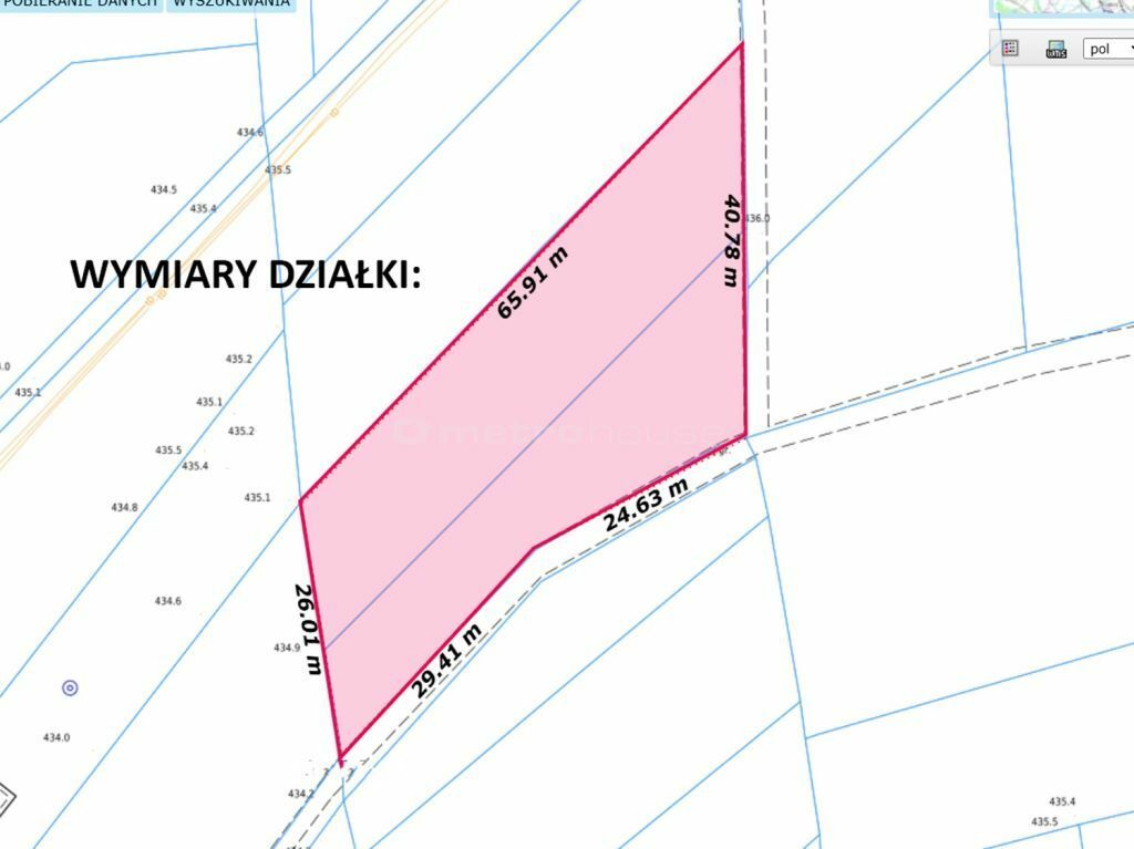 Działka budowlana, pod zabudowę domów jednorodzinnych o powierzchni około 1231 m2.